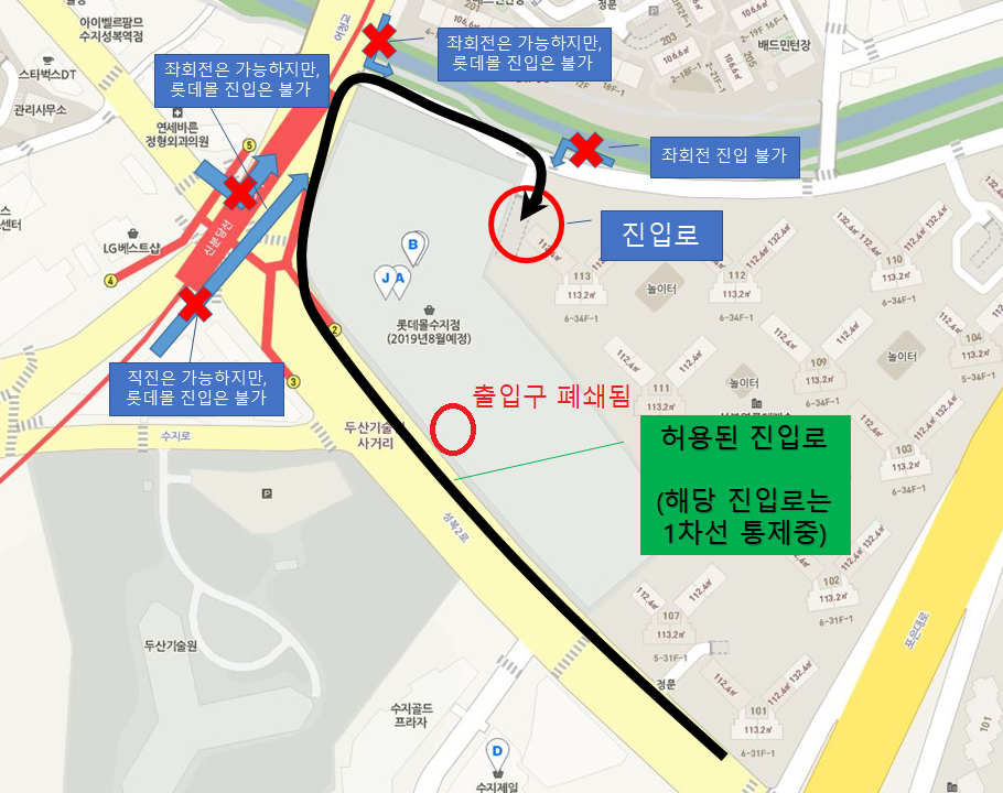 혹시나 차를 끌고 롯데몰 수지로 갈 생각이 있다면, 진입 경로를 확인하고 가는게 좋을 듯 싶다.