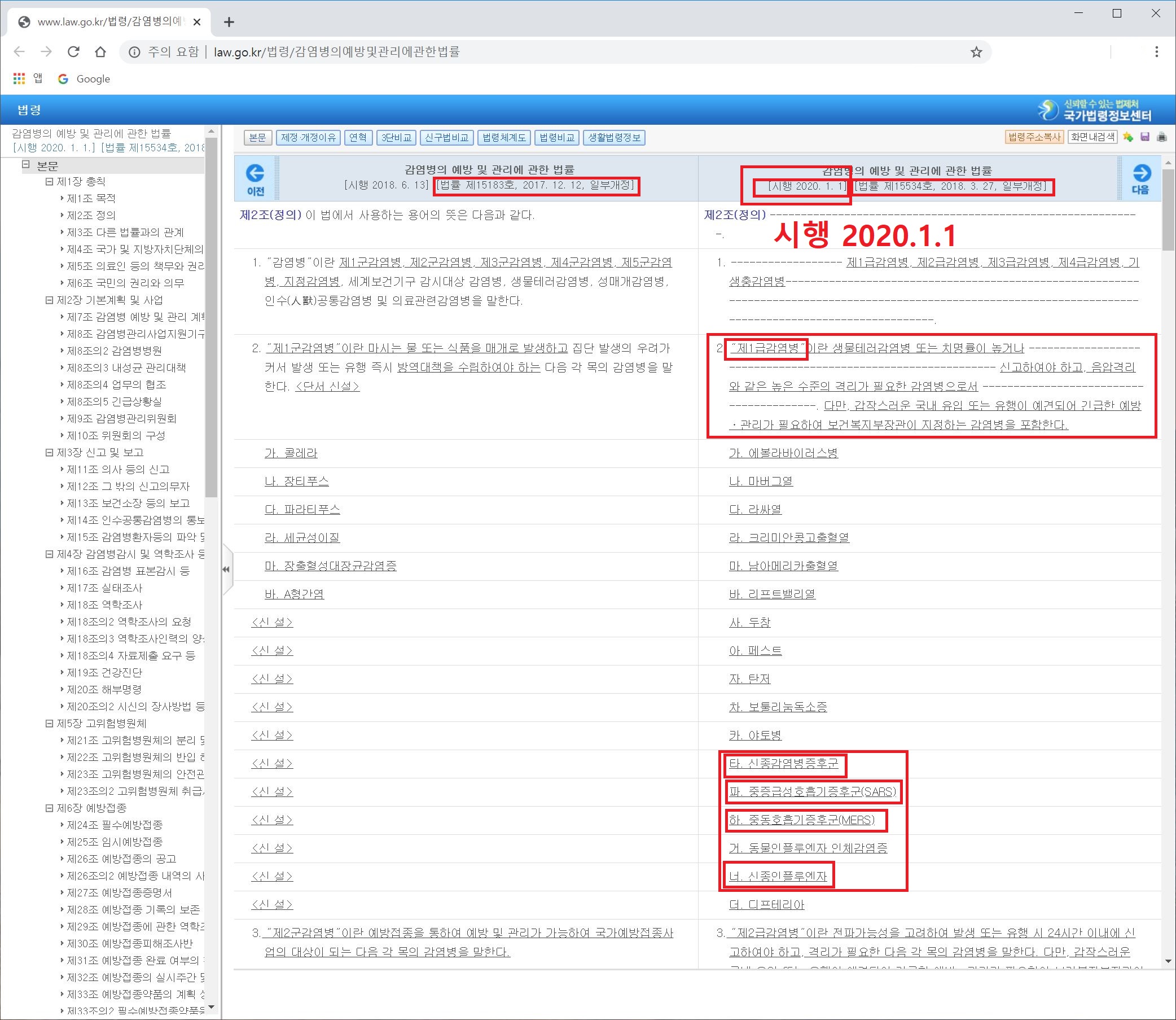 지인을 통해서 귀가 솔깃한 이야기를 하나 들었는데, 전염병예방법이 2020년 1월 1일에 적절하게 개정되어 이번 신종 코로나 바이러스에 대처가 가능했다는 이야기를 들었다. 그래서, 검색해 봤다.
