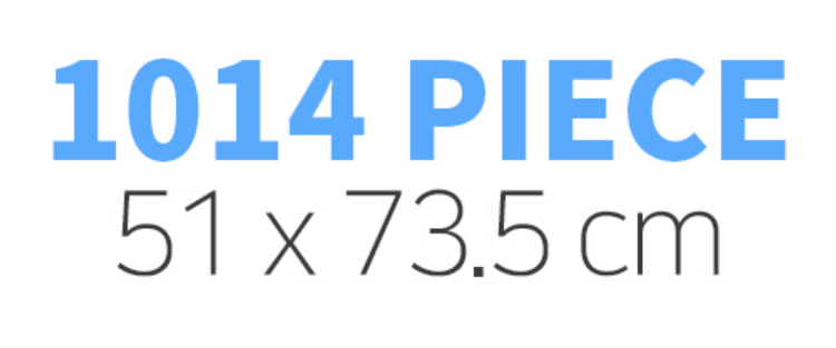 그런데, 아주 간혹 1014 피스 퍼즐도 존재한다. 다행스럽게도 크기는 73.5cm x 51cm 로 1000피스 퍼즐과 동일하다. 참고로 이 경우는 39 x 26 형태로 구성되어 있다.