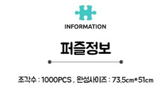 다른 한 가지는 그냥 면적이 2배로 늘어난 경우이다. 73.5cm x 51cm 짜리를 2개 이어 붙이고, 소수점 아래 잘라내면 73cm x 102 cm 가 된다. 즉, 1개 조각의 크기는 1000피스와 같은 대신 완성품의 면적이 2배로 늘어난 것이다.