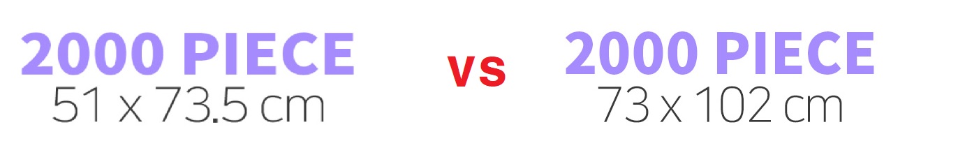 하나는 1000피스와 같은 73.5cm x 51cm 로 나오는 경우이다. 약간 변형된 2014 피스 퍼즐의 경우도 마찬가지. 참고로 피스가 수가 2배인데 완성된 크기가 같다는 것은, 피스의 크기가 작다는 것을 의미한다.