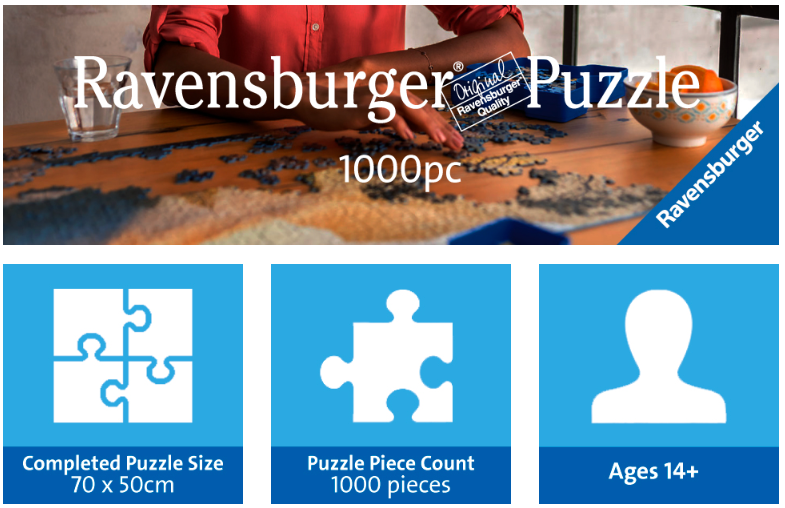 참고로 1000 피스 퍼즐의 경우 40 x 25 형태로 구성되어 있다. 즉, 직소 퍼즐의 굴곡 없이 직사각형으로 자르면, 한 조각의 크기는 1.8375cm x 2.125cm 가 된다. 물론 퍼즐에는 굴곡이 있으므로, 대략 2.5cm x 2.5cm 정도로 취급한다.
