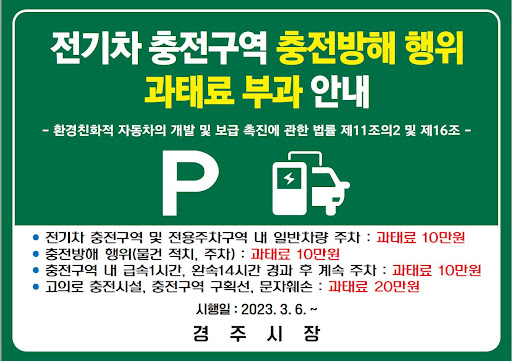 또한, 전기차는 전기차 충전 구역에서 '충전 없이 주차' 가능하다.
