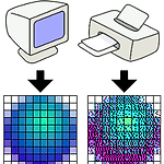 DPI : Dots Per Inch PPI : Pixels Per Inch DPI 와 PPI 는 비슷하면서도 다르고, 구분해서 사용하는 것이 맞다. 모니터, TV, 스마트폰 같은 CRT, LCD, OLED 같은 화면에서는 PPI 이란 표현을 사한다.반면, 프린터를 이용하여 종이에 인쇄할 경우에는 DPI 를 사용한다. 100 ppi 의 모니터와 600 dpi 의 프린터 비교(예시) 이에 대한 구분은 위 이미지로 설명이 가능하다. 모니터에서의 픽셀(pixel)은 하나의 픽셀이 여러색을 표현이 가능하다. 현재의 모니터는 일반적으로 하나의 픽셀에서 1600만가지 색을 표현할 수 있다. 하지만, 프린터의 도트의 경우는 단 한가지, 점이 찍혀 있거나 아니거나만 존재한다. 위의 이미지에서는 모니터의 PPI 수치에 비..