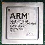 ARM cortex A8 http://www.arm.com/products/processors/cortex-a/cortex-a8.php 현재 가장 널리 쓰이는 CPU 코어이다. 그런데, 살펴 보면 널리 쓰이는 수준이 아니다. 컴퓨터는 CPU 만으로 동작할 수는 없다. 마더 보드에는 여러가지 칩들이 많이 꼽혀 있는데 대표적으로 메모리와 그래픽카드 연결을 위한 노스브릿지와, 키보드, 마우스, HDD 등을 연결하기 위한 사우스브릿지 같은 칩셋이 존재한다. 물론 그외에도 사운드 관련, 네트워크 관련 칩셋들도 즐비하게 붙어 있다. 이는 핸드폰과 같은 휴대용 기기에서도 마찬가지 이다. 본질은 컴퓨터와 별반 다를게 없다. ARM 은 자신들이 만든 CPU 코어를 칩으로 만들어 팔기도 하지만, 회로 자체를 여러 회사에게..